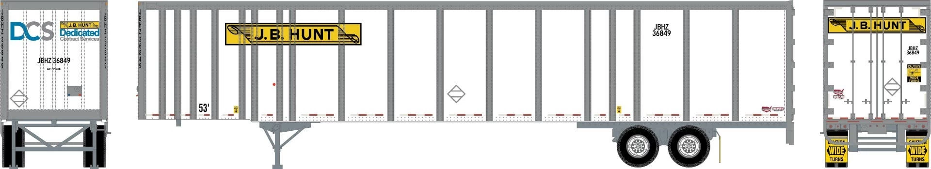 Athearn 72824 HO 53ft Wabash Plate Trailer JB Hunt #36849